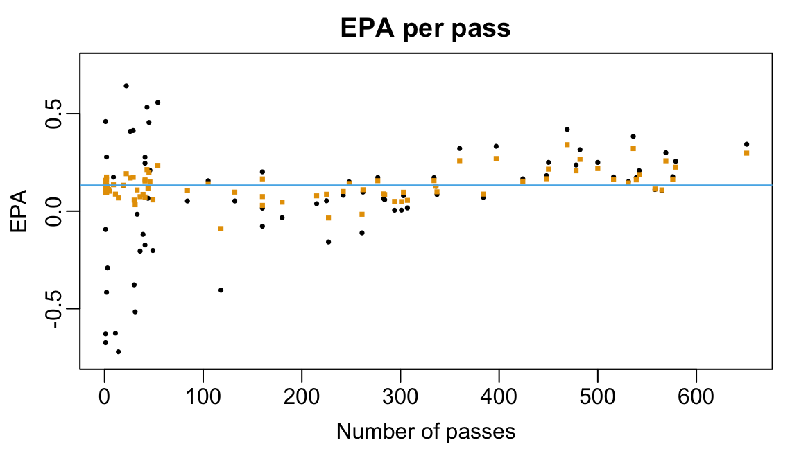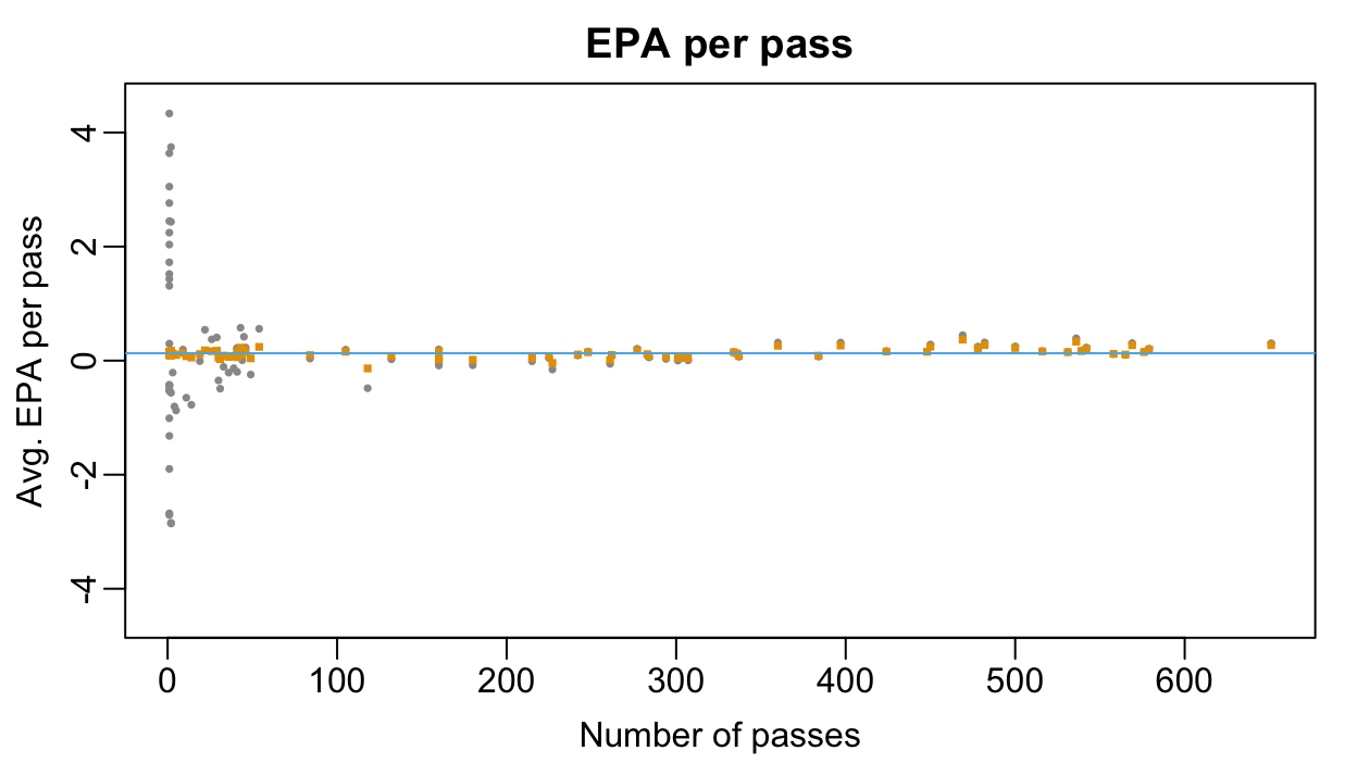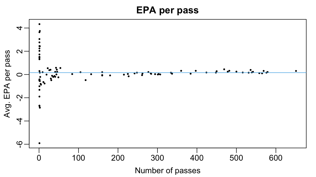 Indeed, if AJ Cole, who is a punter, were to throw many more passes, do we really think he’d consistently add around 4 expected points every time?↩︎