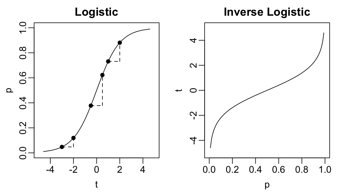 DistToGoal?Binary outcome \(Y\) and numerical predictors \(X_{1}, \ldots, X_{p}\): \[ \log\left(\frac{\mathbb{P}(Y= 1 \vert \boldsymbol{\mathbf{X}})}{\mathbb{P}(Y = 0 \vert \boldsymbol{\mathbf{X}})}\right) = \beta_{0} + \beta_{1}X_{1} + \cdots + \beta_{p}X_{p}. \]