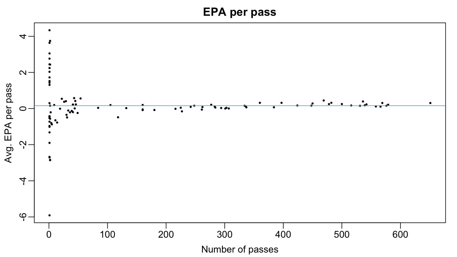 \(\alpha_{0}\): average per-pass EPA over super-population of passers