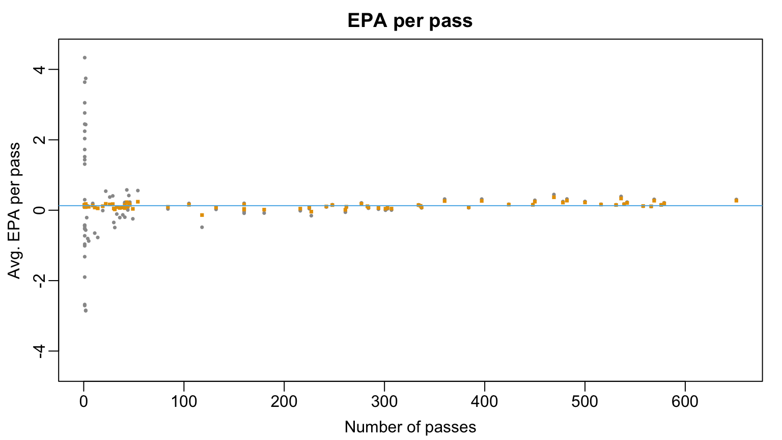 \(\sigma\) captures “within-player” variability in EPA pass-to-pass